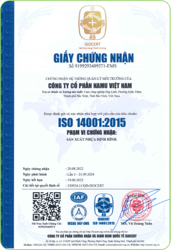 Với cam kết phát triển bền vững, Namu Việt Nam đã đầu tư vào dây chuyền công nghệ tái chế hiện đại, hướng tới mục tiêu giảm thiểu tác động đến môi trường. Các sản phẩm từ nhựa tái chế của chúng tôi không chỉ đạt tiêu chuẩn chất lượng cao mà còn góp phần bảo vệ môi trường, đáp ứng xu hướng sản xuất xanh và bền vững.