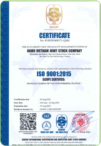Công ty Cổ phần Namu Việt Nam sở hữu đội ngũ nhân viên giàu kinh nghiệm kết hợp với hệ thống máy móc hiện đại, tạo nên một tổng thể mạnh mẽ trong việc sản xuất các sản phẩm nhựa chất lượng cao. Nhờ đó, chúng tôi có thể đáp ứng linh hoạt các yêu cầu về thiết kế, kích thước và số lượng của khách hàng.
